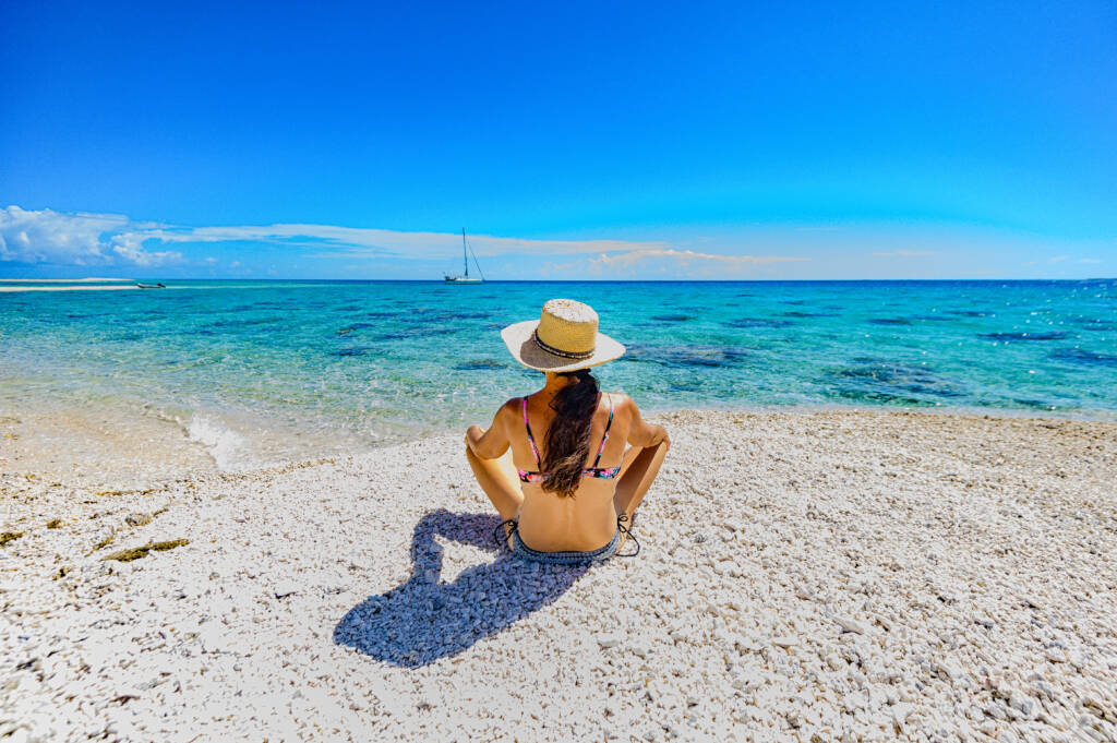 Ein erfrischendes Bad im kristallklaren, warmen Wasser der Lagune ist der perfekte Start in den Tag. Man ist der erste und einzige, der in dieser Stille schwimmt.