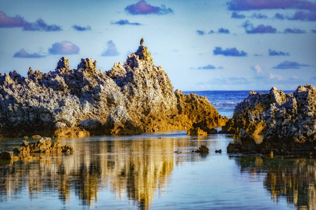 Viele Atolle haben eine einzigartige Landschaft. Man kann die Inselränder entlangwandern, verlassene Wege erkunden oder auf Korallenfelsen klettern, die aus dem Meer ragen.