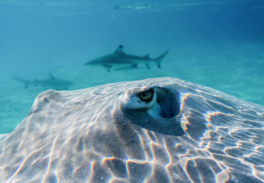 Eine der Hauptattraktionen der Atolle ist die atemberaubende Unterwasserwelt. Du kannst stundenlang schnorcheln oder tauchen, ohne jemand anderem zu begegnen. Die Korallengärten sind voller bunter Fische, Rochen und auch Haien – ein faszinierender, aber auch respektvoller Umgang mit ihnen ist selbstverständlich.